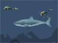 あなたは魚を食べる水中で泳ぐが、彼女のダイバーを攻撃から保護されているサメとして機能します。 できるだけ泳ぐ。 長く、より多くのポイント。 ゲームのコントロールは - 方向と速度は、空間制御された攻撃を使用して、マウスで制御されます。